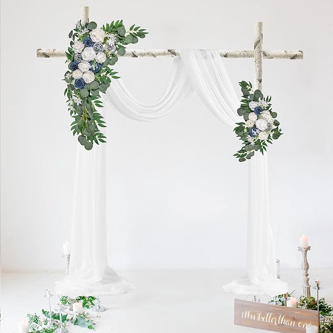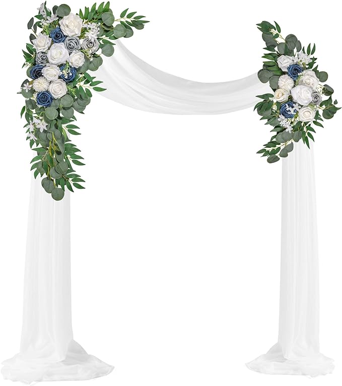 LYLYFAN Wedding Arch Flowers Kit 2pcs Artificial Floral Swag Arrangement with 1pcs Drape for Wedding Ceremony Arbor Backdrop Decoration