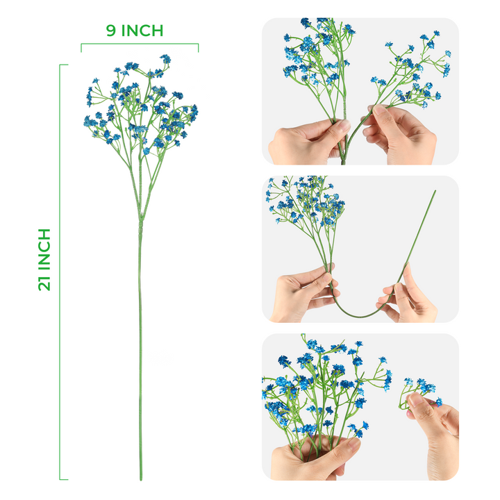 Material: Flower head is rubber material,plastic stem, white gypsophila flowers.Wire wrapped with plastics is used for firmness and angle-adjustable in creating the stems